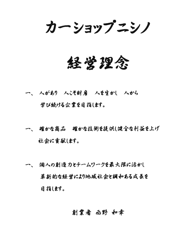 | 取扱業務 | 中古車販売、国産新車販売、輸入新車販売、注文販売、リース販売、 レンタカー、保険取扱、JAF 入会取次、板金・塗装、ルームクリーニング、ドレスアップ、一般整備、点検整備、車検整備 |