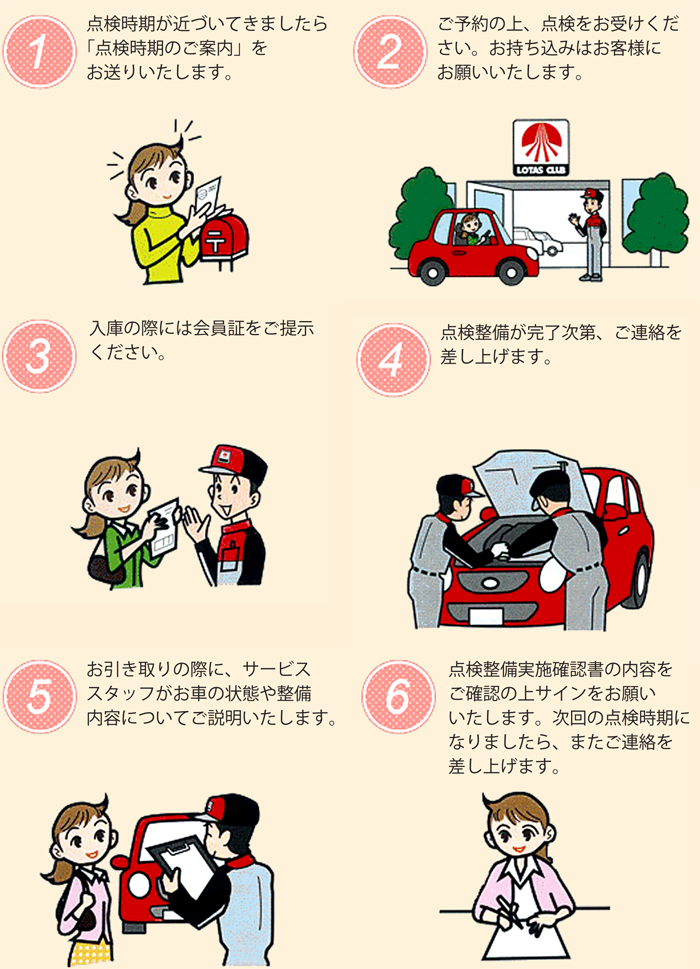 入会資格●全日本ロータス同友会加盟の自動車整備工場にて自動車の点検等の保守を希望されるお客様に限り、1台につき1件の入会ができます。